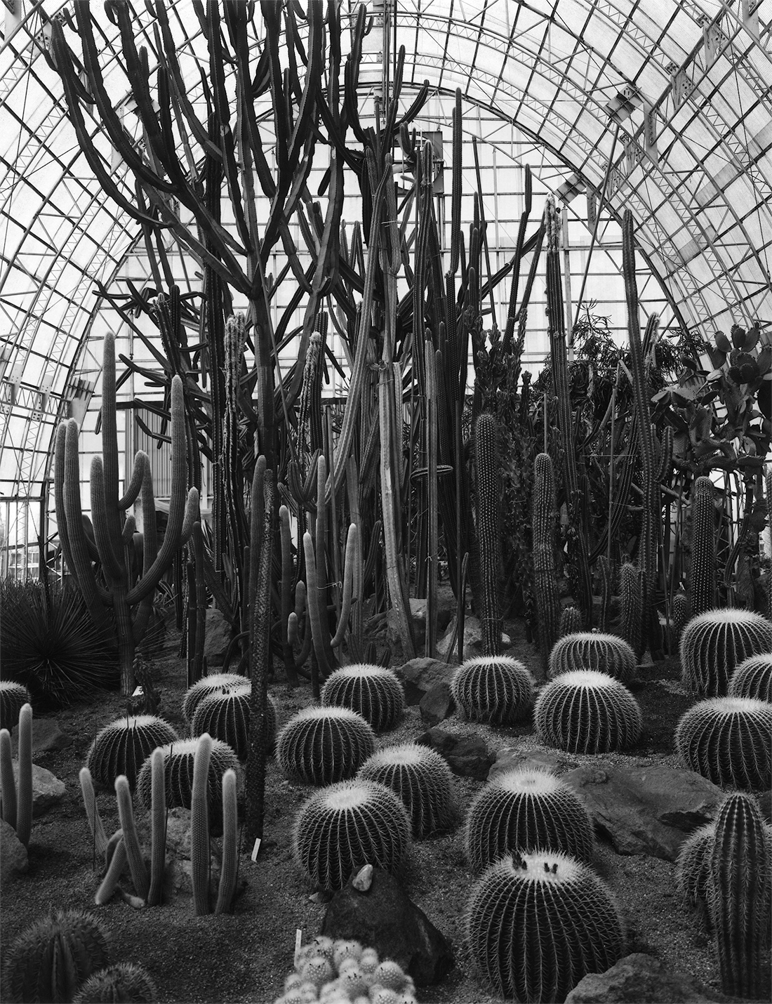 Light in hothouses is unique. Through the large glass ceiling in white-painted frames, the light from outside falls in drops into the space where time seems to have stopped, and the light, in this manner diffused by the glass, slowly settles down. Hothouses arrest time. Is it because of the effect of mysterious light? It has a kind of clairvoyance by which we are invited to the future paradise or carried back to the past hiding place.