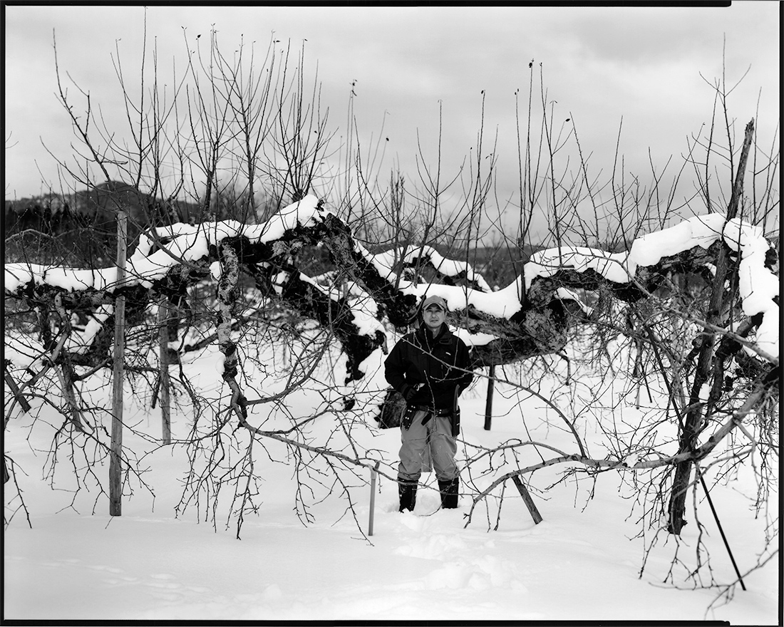 リンゴの土地までは凡そ七百キロ。この道程は大雪に見舞われていた。シベリアからの寒波が張り出して来ているらしい。峠を過ぎ高低が下がると、圧雪の道路に気を使い、いつものハンドルの握りより心なしか慎重だ。これが堪らなく心地よい、ふと気がつけば曲はいつものNeil Young。そして一人はにかみ車を走らせる。着いた所には肩まで雪で埋もれた、百回以上実を実らせたリンゴの樹が耐えている。