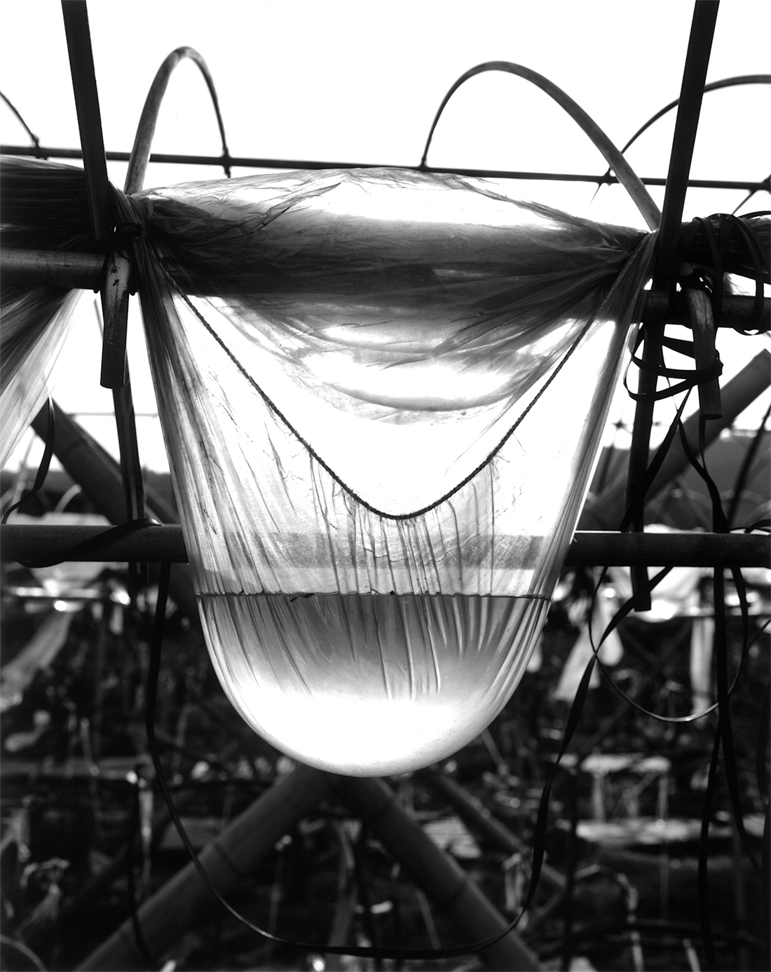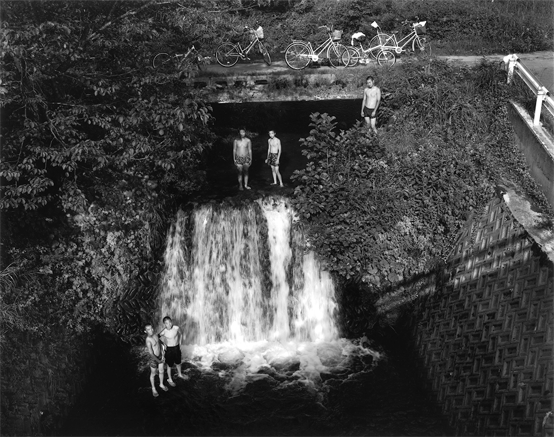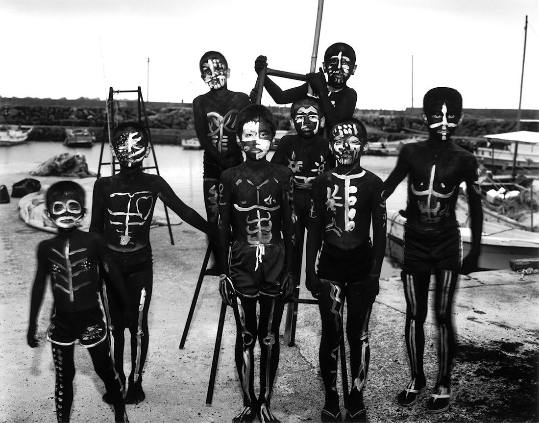 それは世紀が間もなく変わる頃のある夏の旅だった。私には幾度訪れてもいつも不思議な気分がわき起こり、撮影をさせられてしまう土地が幾つかあります。そんな不思議な場所の一つである、大きな砂丘のある街から、その旅は始まった。いくつもの入り江とそれと同じ数だけの小さな漁村を通り過ぎ、盛夏だというのに飛込み台とラッパスピーカーだけが目につく人気の無い浜を見下ろして。その先の漁師町では防波堤の脇では沖は時化ているのだろう、一人の漁師が漁協の帽子に鉢巻をして網の繕いをしている。国道から見られている気配を感じたのだろう、一瞬頭をもたげ眼をあわせられた。それはいつもとおなじに、時は過ぎ、景色は変わり、私は移動する。そしてそのことは俄にやってきた。バイパスが出来た為、海辺りを通る道は見捨てられていた。沖には二つの島影があり、小さな半島を回り込む峠にさしかかった時だった。一抱えとでは言いきれない程の束の夏花を竹籠に生けて背負って行く老婆に会えたのです。グラジオラスにポンポンダリヤ、矢車草に向日葵、カンナにエゾ菊、まだまだ底の方にもありました。底の方がつぼまる背負籠、木綿の絣の肩当て、頭には酒屋の手ぬぐいの姐さんかぶり、汗でしみる、糸瓜襟の白い半袖ブラウス、幾人かの子供を育て上げた遠くを見据える涼しげなまなこ。そして老婆との会話は、彼女は二回首を横に振っただけでした。「写真を撮らせてください」「町まで乗りませんか」